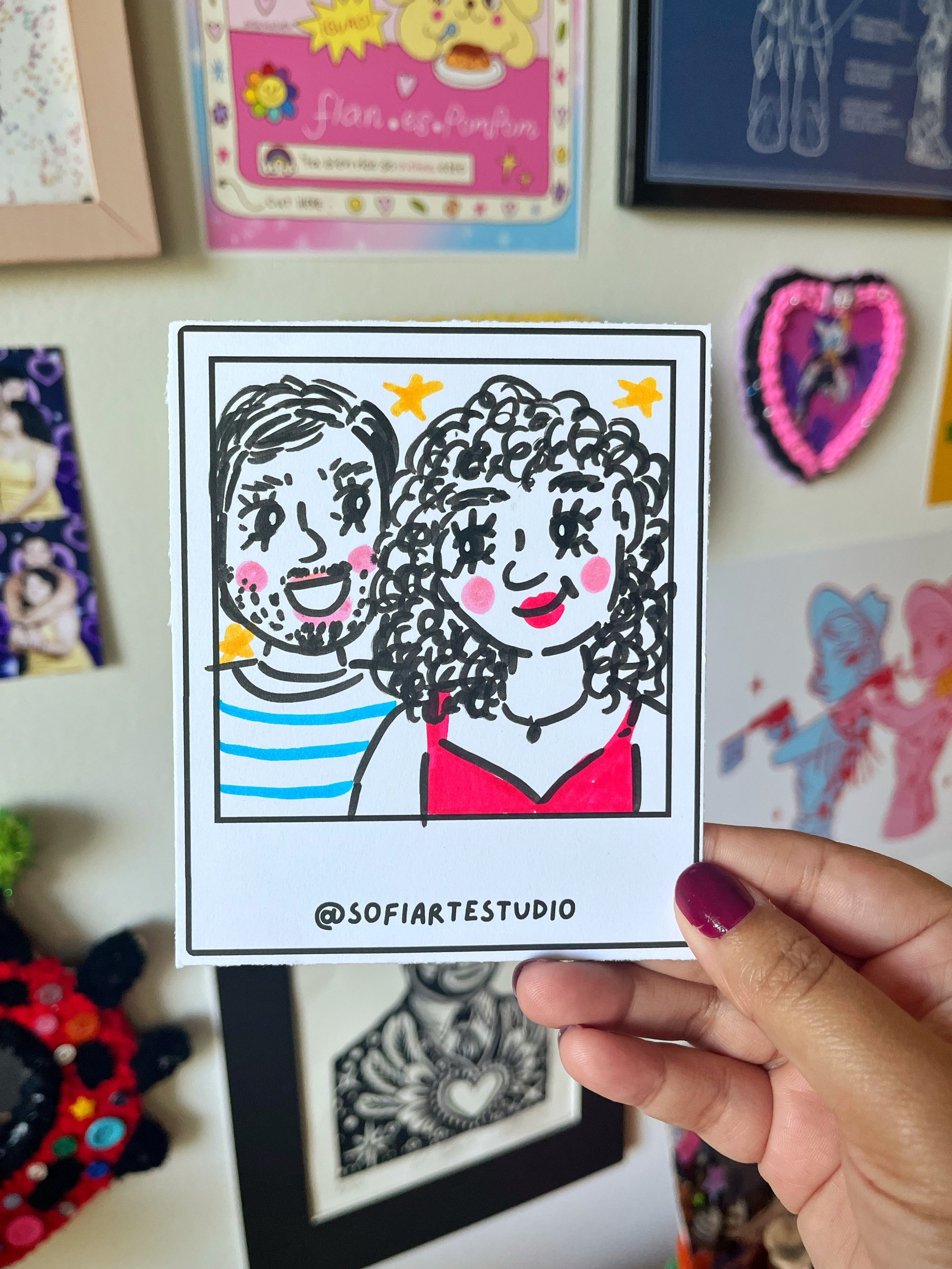 Ever wanted a cute doodle portrait at my doodle booth but aren't local to my events? Look no further! These cutie doodles are handmade in a flash and sent directly to you via mail. They take 1-2 weeks from ordering to shipping and are completely customizable. Each polaroid style portrait is 4x4.5'' approximately. I can ship them in an envelope (untracked mail- if it gets lost I am not responsible) or through tracked mail service.