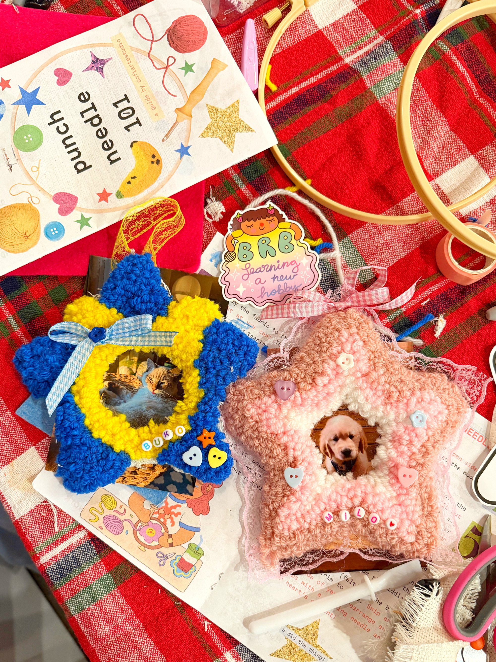 π§Ά 1 punch needle kit for crafting at the workshop and later at home that contains: a punch needle, threader, monkscloth, felt, small craft scissors, fabric glue, an 8ββ embroidery hoop and a mini guidebook: βPunch Needle 101β.